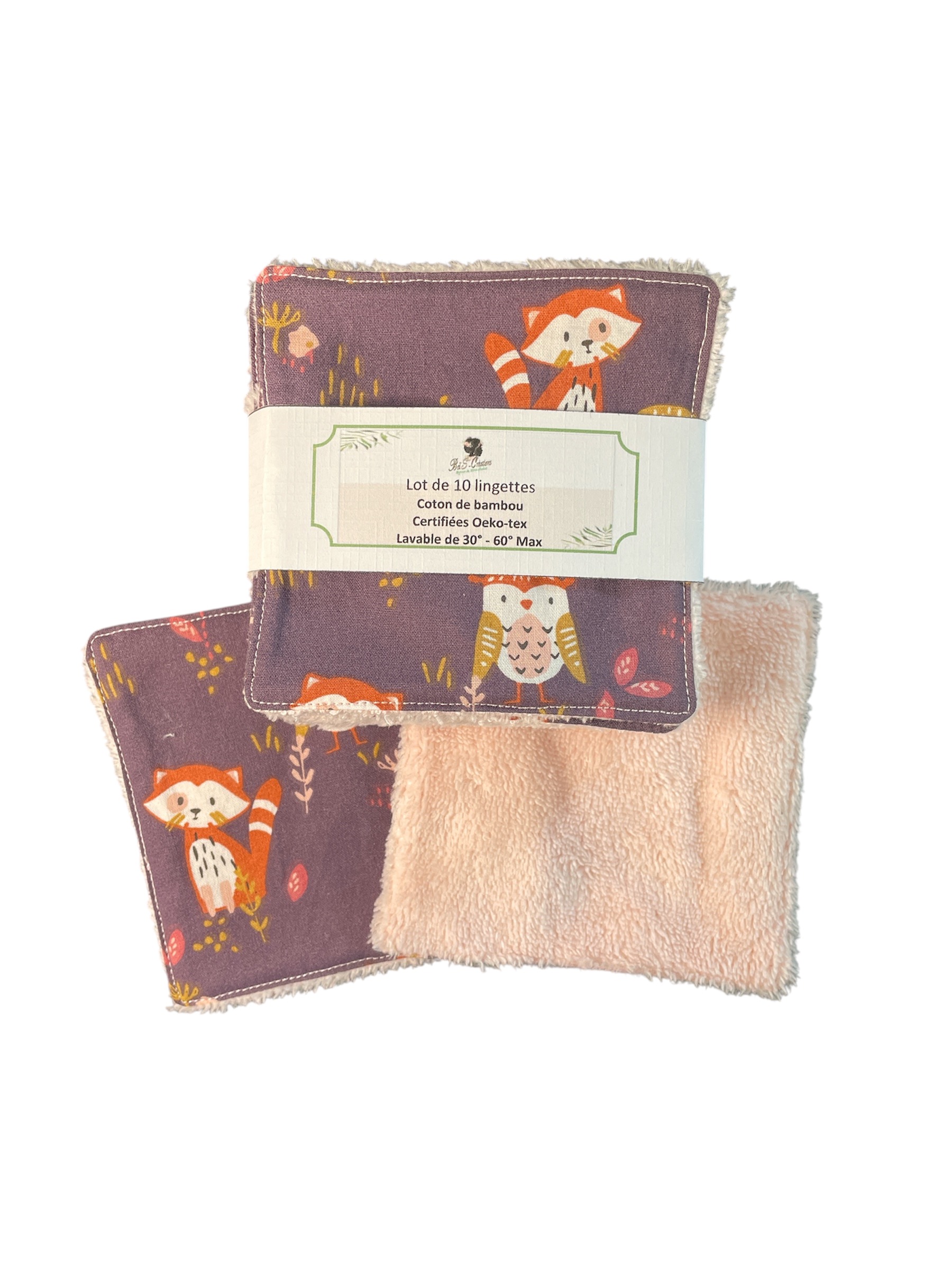 Craquez pour ce lot de 10 lingettes lavables faites main, spécialement adaptées aux peaux sensibles grâce à leur face en coton de bambou toute douce.
